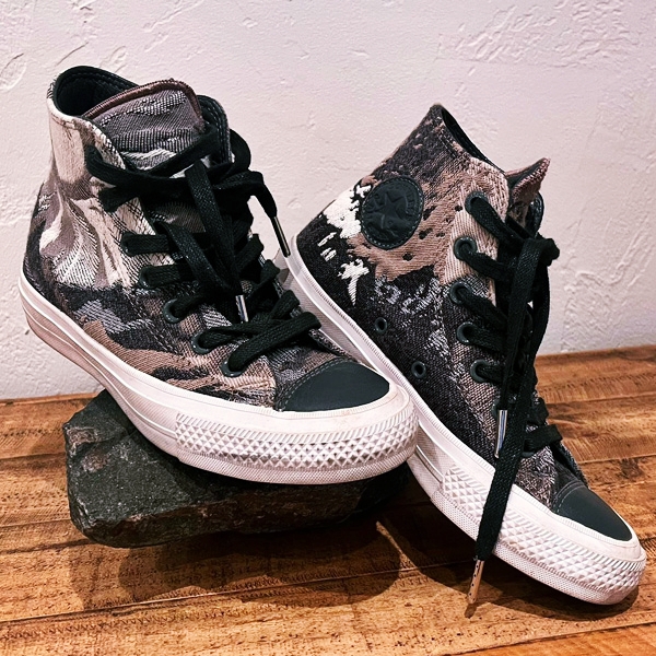 Extrem seltene Converse Chuck Taylor All Star II High-Tops. Dieses limitierte Woven-Canvas-Modell mit abstraktem Tarnmuster ist ein Sammlerstück und bietet dank Lunarlon-Innensohle Premium-Komfort.